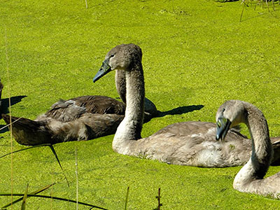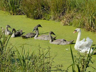 ![]() Somerset levels. Swan and offspring in a rhyne |